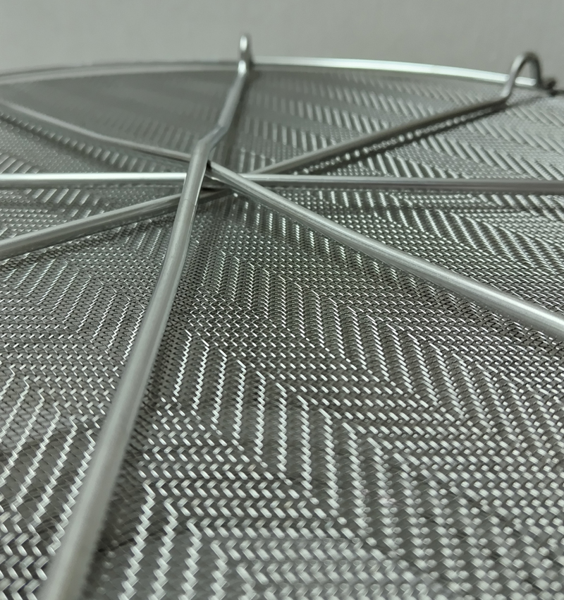 「吟醸用洗米ザル」では、小さな米粒を逃がさないため、 20 メッシュの細かい網目を採用しました。また、綾織という立体的な構造とすることで、目詰まりを解消しています。普通のザルでは使われない高級網材を使っているからこそ、他とは比べ物にならない水切れのよさを実現しているのです。